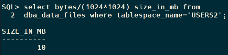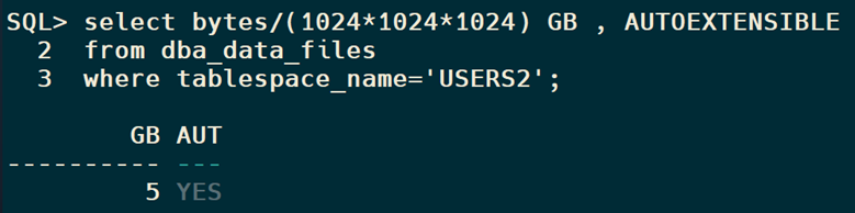 The USERS2 Bigfile tablespace we added earlier is currently occupying 73 GB of the total database capacity and the free space is less.