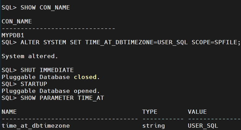 - USER_SQL: Functions SYSDATE and SYSTIMESTAMP will be based on the DBTIMEZONE value in the PDB