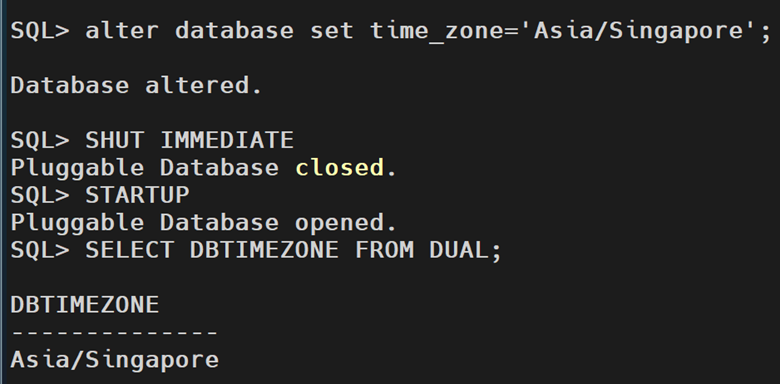 The DBTIMEZONE will be changed to ASIA/SINGAPORE at the PDB level