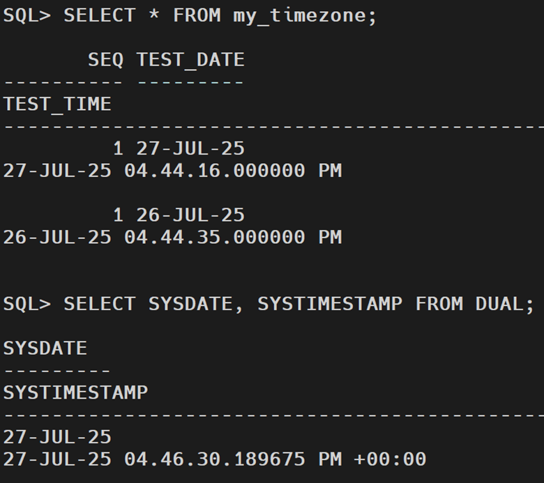 - OFF: The behavior of pre-23ai. Time-related operations will be based on the database hosts Time zone values.